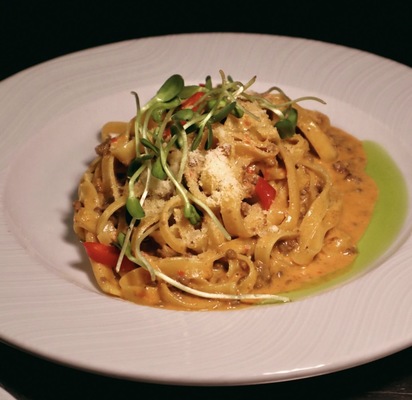 Mięso wołowe mielone, papryka czerwona, cebula, czosnek, chilli, śmietanka, parmezan, oliwa szczypiorkowa